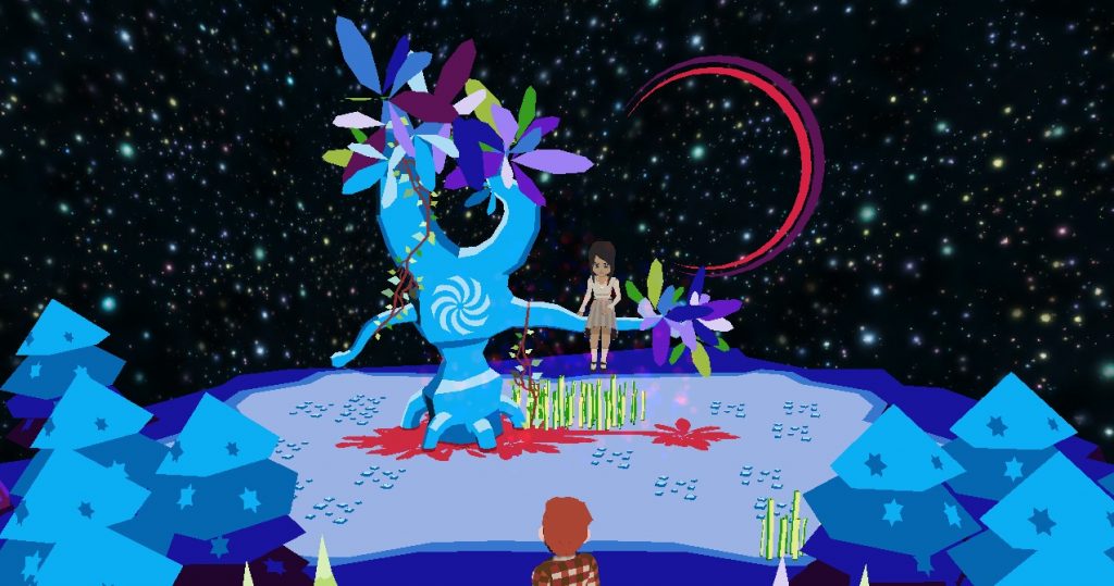 While playing the demo, I admit to myself that the narrative strategy is an interesting idea, but it’s also unsettling and, frankly, wrong feeling, like an example story a creative writing teacher might show you so you avoid making that person’s mistakes. Times where the dialogue between two characters suddenly shifts perspective and style into something I’d expect to read in a teenager’s journal, made worse by hipster references that feel overly crafted, make me want to move through the game faster. It is thoroughly difficult to manage, but again, something is happening here, and the surrealism keeps bringing it home.