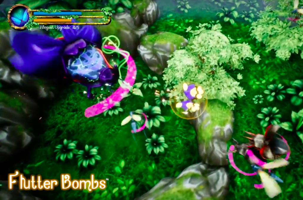 In a gameplay trailer posted to YouTube on January 2, the developers show off a new concept build of their game in action. Selecting from a roster of ten different options, players choose a butterfly to fight their way through waves of laser blasting enemy insects with. Each butterfly has their own name, weapon types and stats, from one named Neutron with a slow precision bomb to another named Tomahawk with split bomb attacks. Each butterfly can gain powers and different blast attacks by grabbing power ups littered throughout the environment, from a rapid fire dual blaster to protective barriers.