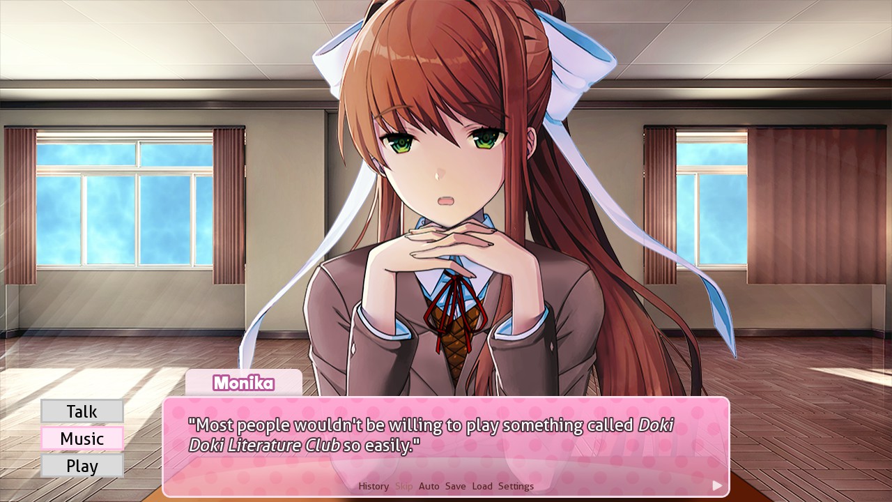 There are three ways to interact with Monika: 1) Typing in keywords for discussion, 2) Playing games with her (Pong and Chess for now), and 3) Waiting for dialogue to randomly appear. As most of the gameplay focuses on conversing with Monika, After Story’s dialogue covers a wide range of topics.