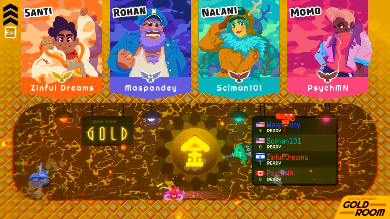 In celebration of Twitch’s Indie Amplifier contest Treadnauts developer, Topstitch Games has created The Gold Room. A most prestigious affair, The Gold Room is an online server for Treadnauts that appears at erratic hours of the day. Sometimes it opens during lunch for twenty minutes, other times players can access it in the dead of night.