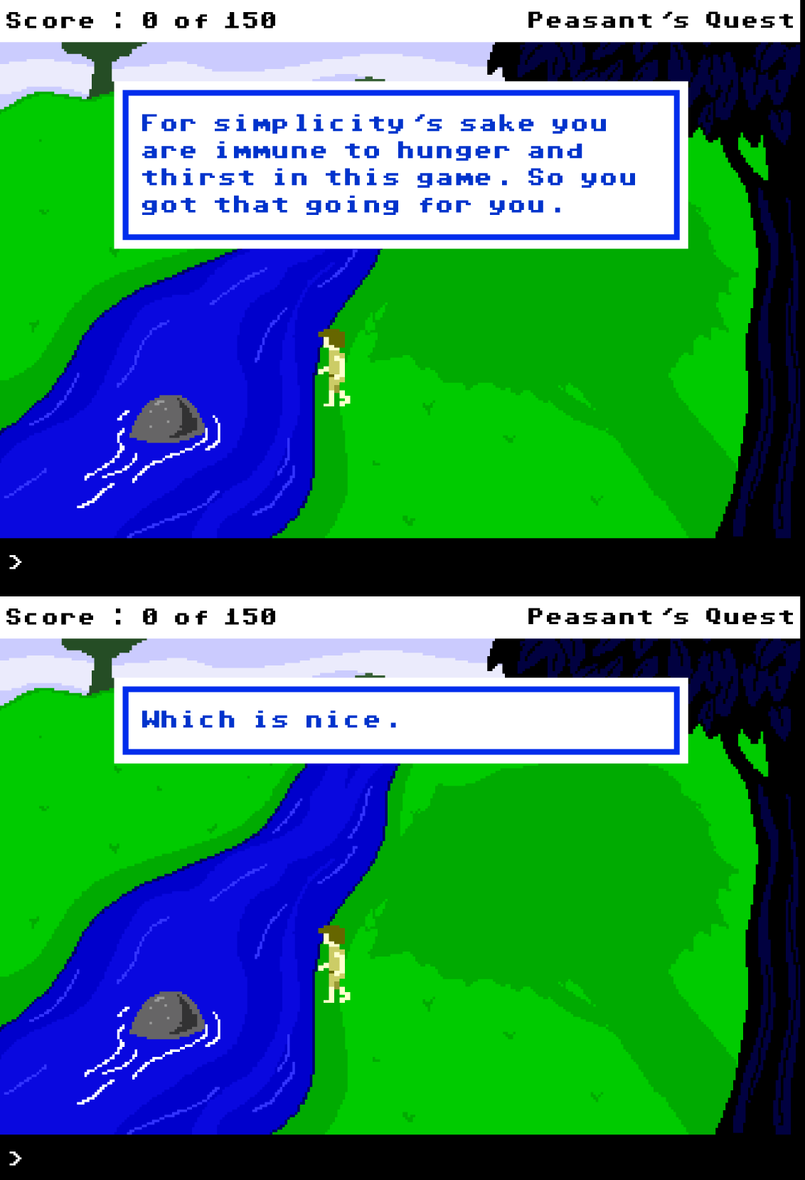 Peasant’s Quest is something you can knock out in an afternoon at most, and it’s something that sticks with you because it’s so ingrained in the video game zeitgeist. If you’ve played it before, take another visit to Peasantry as some of the best bits on Homestar Runner are localized entirely within this browser game. If you haven’t played Peasant’s Quest before, you can finish it in the time it takes to read this article and it’s well worth the investment, both on the virtue of it being a masterclass on how excellent free flash games can be as well as a perfectly timed look back on a unique slice of Interneticana.