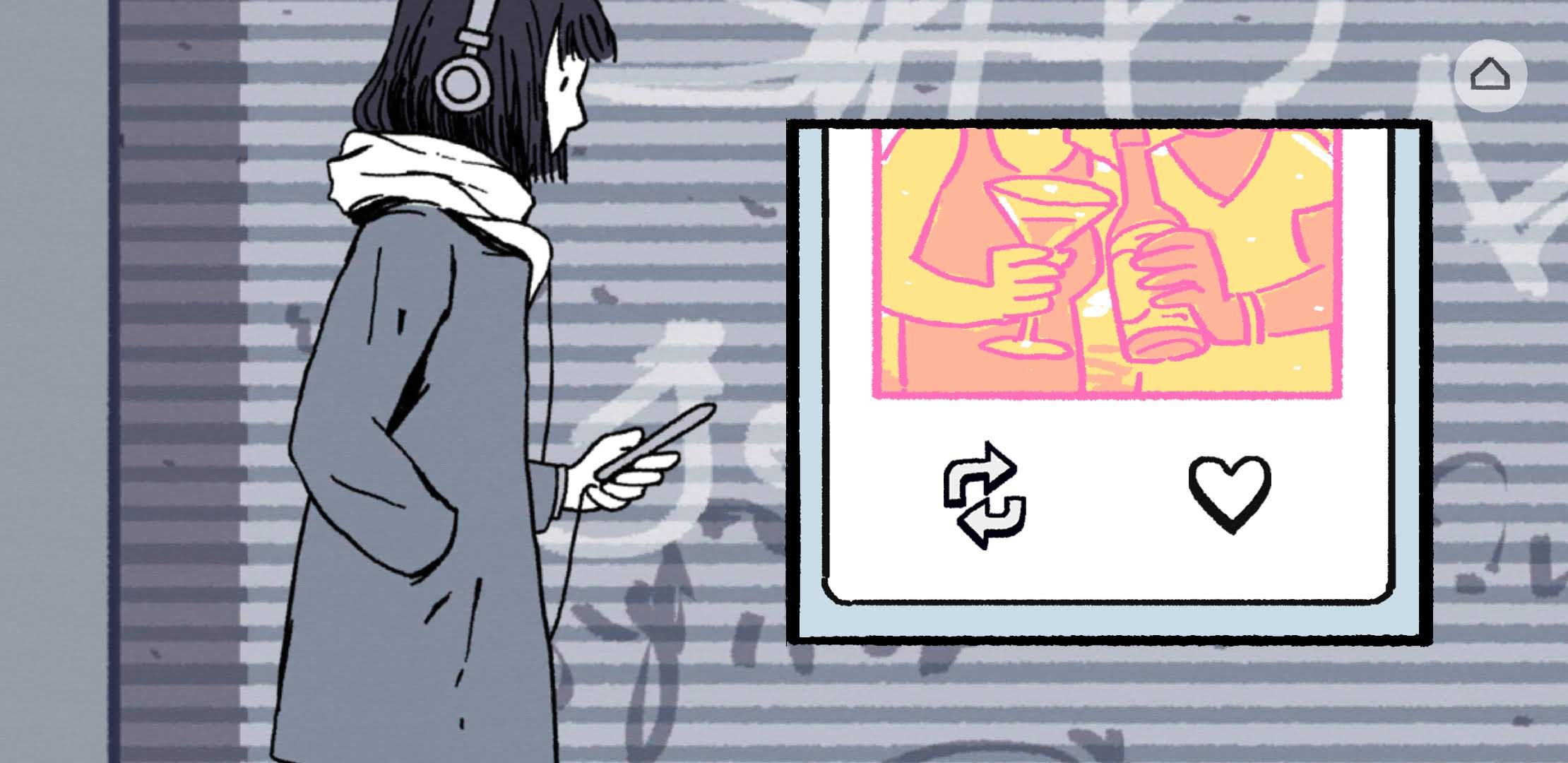 In order to tell its rather simplistic narrative, Florence is built around many basic prompts which the player is likely familiarized with on a daily basis in real Life. It recontextualizes finger swipes and retweets into a more connected relationship outside the boundaries of a smartphone screen, metaphorically suggesting the ironic nature regarding isolationism within internet culture.