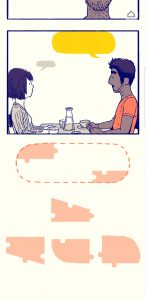 The way in which Florence contextualizes the player’s fingertaps into thematically-significant orchestrations is nothing short of revolutionary. Text bubbles become puzzles to solve, describing thoughtful dialogue. Their round shapes at first imply wholesome bonding; while jagged edges later result in arguments, ultimately leaving the two central characters as mere black and white sketches.