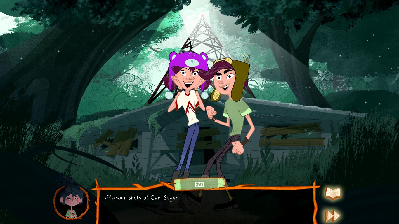 From here, the game introduces elements that will be familiar for fans of dating sims like Dream Daddy, as the player chooses which activities the campers will engage in. Sid, an auteur and ukulele player, spearheads a theater production. Ruby, the self-described “Most Spirited Camper,”provides lessons in Whupiwitchi history. And Ezzi and Ella, a pair of mischievous twins with prodigious IQs, conduct mad science experiments.