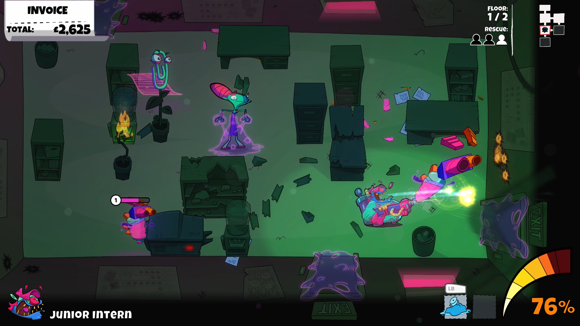 We’ve really gone to town on allowing our sense of humour to shine through. With the titles of individual enemies, or the job titles, or even the appearance of the enemies. For example, one enemy is a dog poo bin that fires bags of dog poo at you. We always wanted that sense of humour in there. The player’s boss doesn’t really appreciate them very much. You’re given job titles but they’re just meaningless. You go from being a Minor Intern, to a Chief Executive Intern. It’s just the sort of thing that makes us laugh.