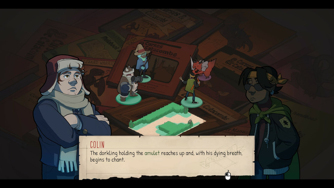 On top of that, there’s the hint of crossover between the two worlds. For instance, toward the end of the demo, Colin suggests that he and his friends apply their tabletop game tactics to the snowball tournament. Anderson observed that it’s like a metaphor for people playing through their interpretation of the world to deal with it.