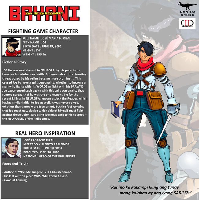 This bio for playable character Joe and his real-life inspiration Jose Rizal is found on the game’s website, along with bios for the other fighters and the different historical figures that inspired them.